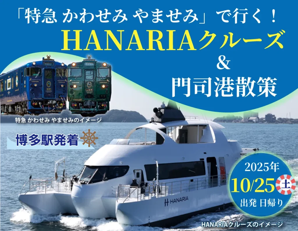 JR九州「特急かわせみ やませみ」で行く!HANARIAクルーズ&門司港散策 ツアーを実施します。