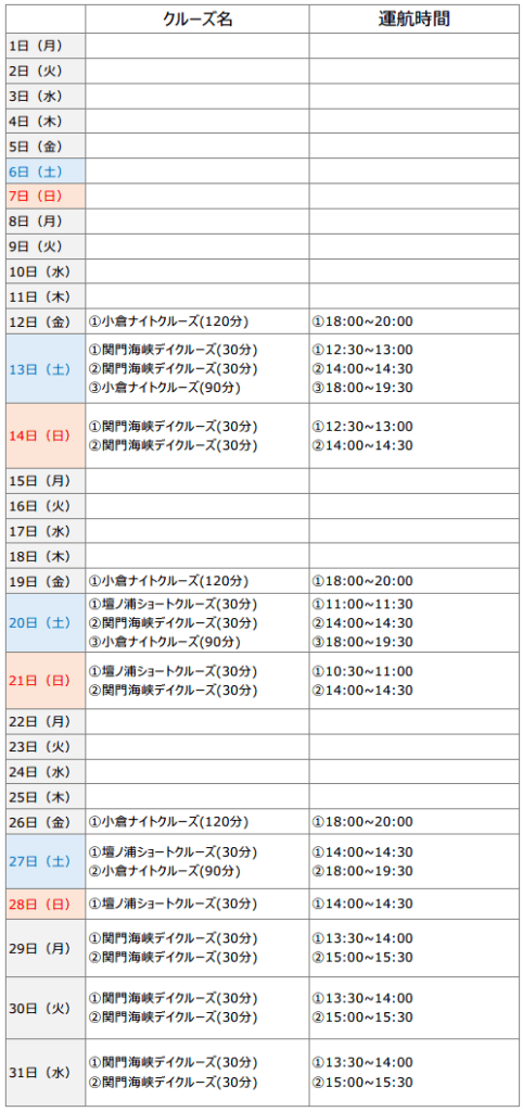 【お知らせ】小倉ナイトクルーズ料金改定について